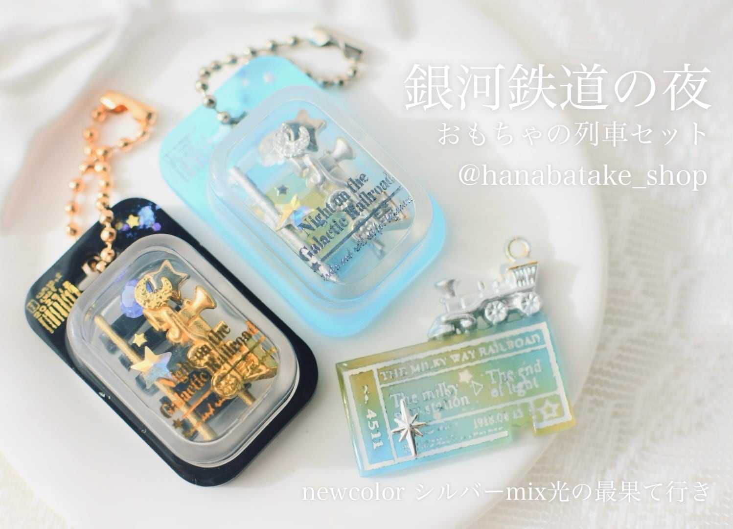 銀河鉄道の夜シリーズ、列車やレールをケースに入れた小さなおもちゃセットモチーフです!
